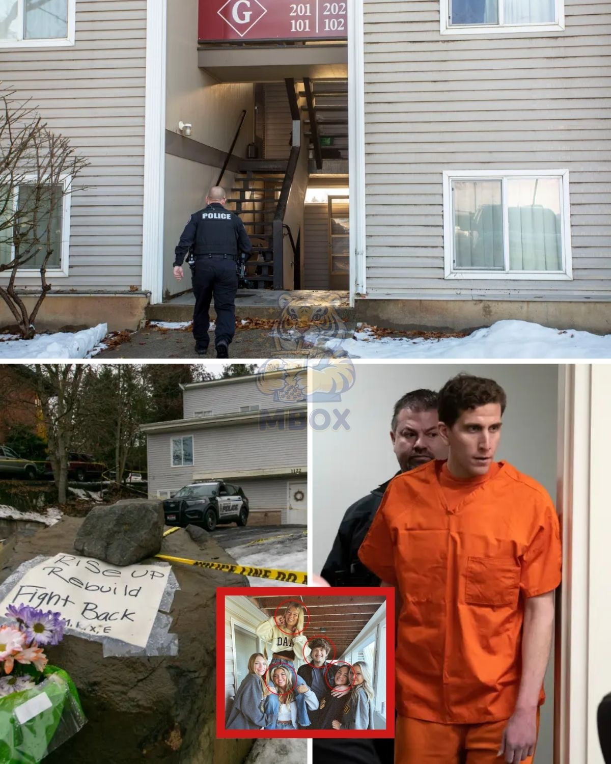 Kohberger was charged with four counts of murder in the stabbing deaths of Madison Mogen (top left), 21, Kaylee Goncalves (bottom left), 21, Ethan Chapin (center), 20, and Xana Kernodle (right), 20.